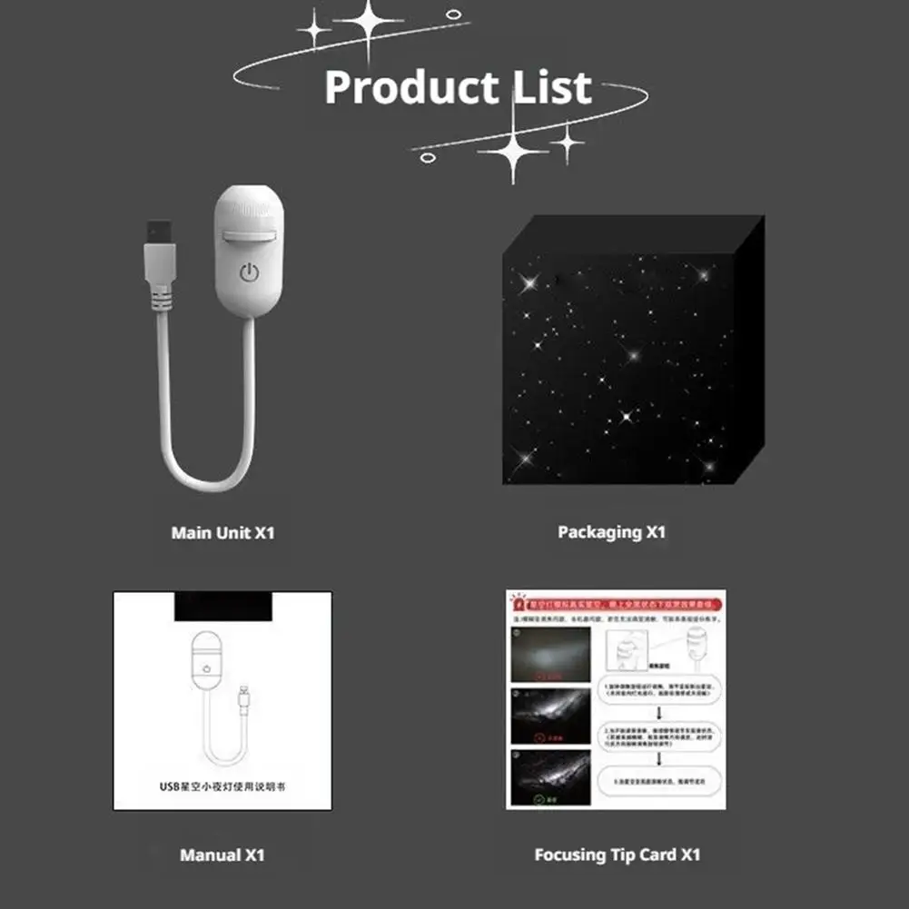 Packaging list: 1 packaging box, 1 projection lamp, 1 instruction manual, 1 reminder card